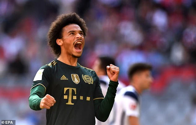 Leroy Sane mở màn "bữa tiệc bàn thắng" của Bayern ở phút 17. Ảnh: EPA.