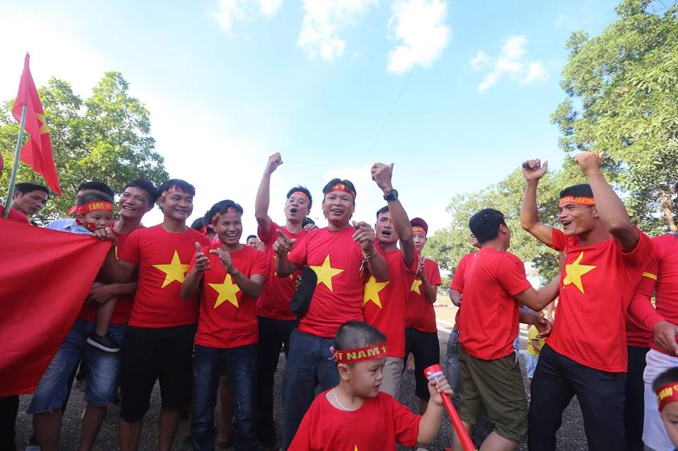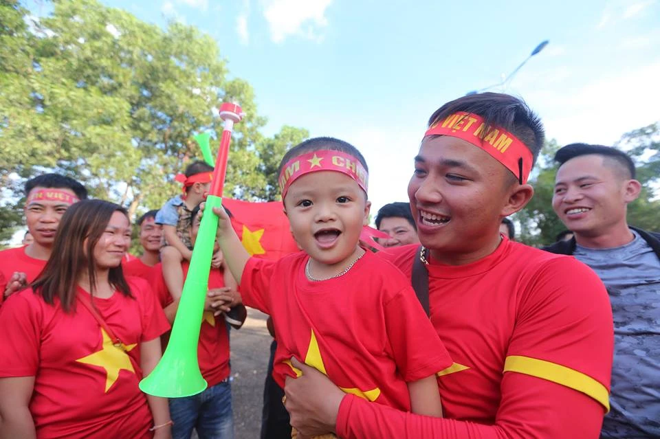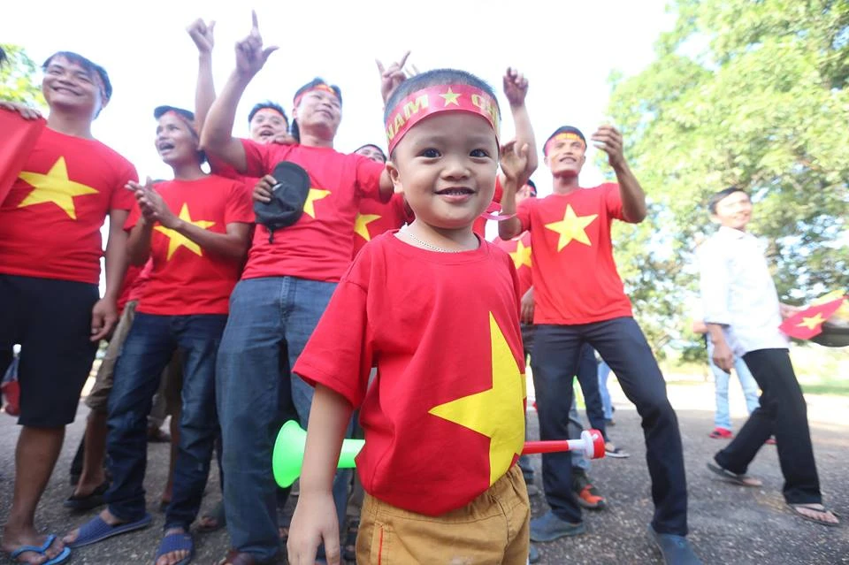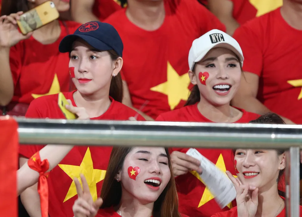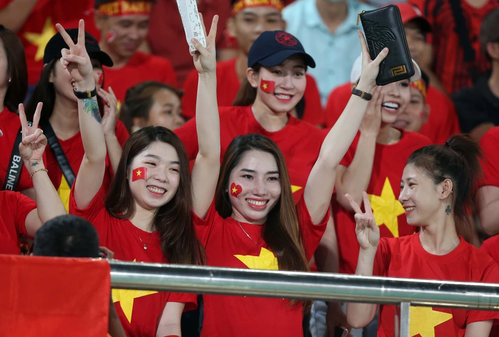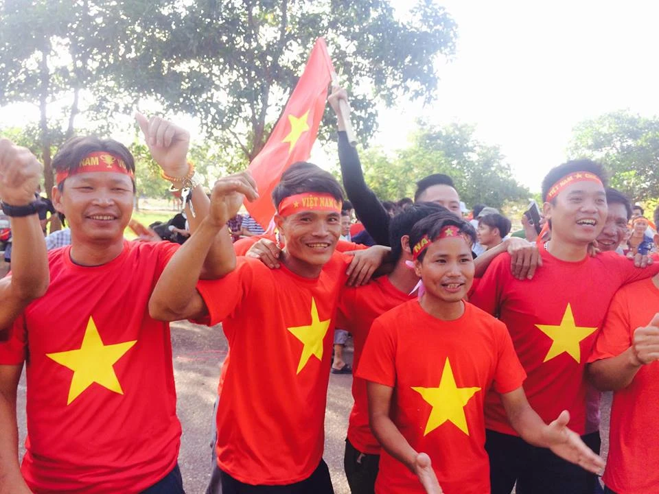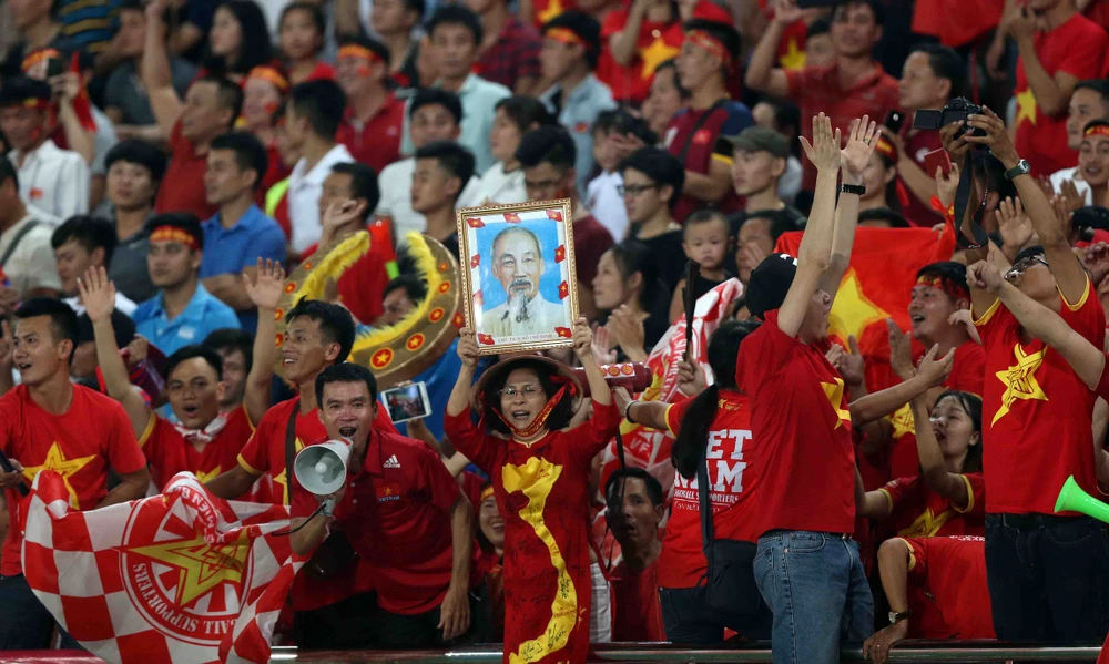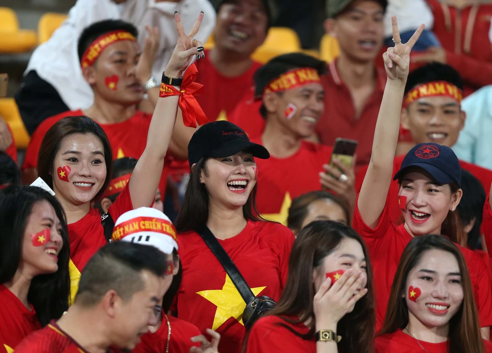 Các CĐV Việt Nam có dịp ăn mừng bàn thắng. Ảnh: NGỌC DUNG