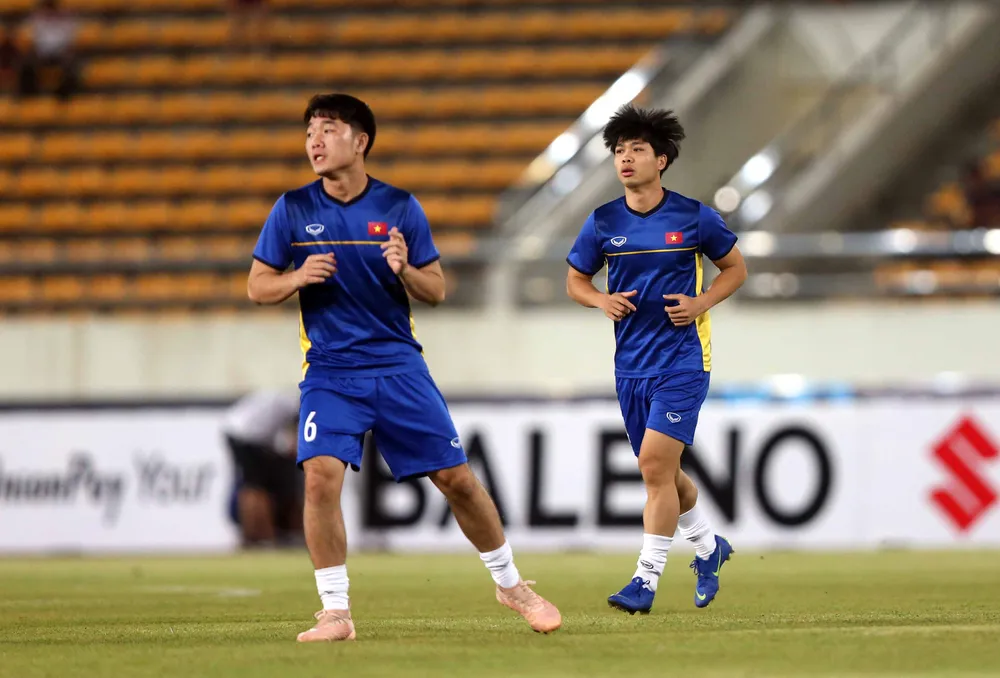 Bộ ba trung vệ của đội tuyển Việt Nam gồm Quế Ngọc Hải, Trần Đình Trọng, Duy Mạnh. Hai bên cánh là Trọng Hoàng và Văn Hậu. Dẫn dắt hàng công của Việt Nam là đội trưởng Văn Quyết và Anh Đức. Cầu thủ còn lại có tên trong đội hình xuất phát không ai khác ngoài Quang Hải.