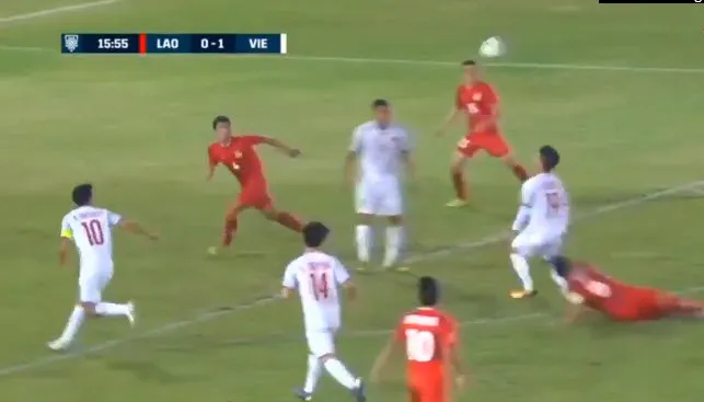 Phút 77, nhận đường chuyền của Xuân Trường, Công Phượng thoát xuống rất nhanh rồi dứt điểm tung lưới tuyển Lào nhưng trọng tài căng cờ báo việt vị.