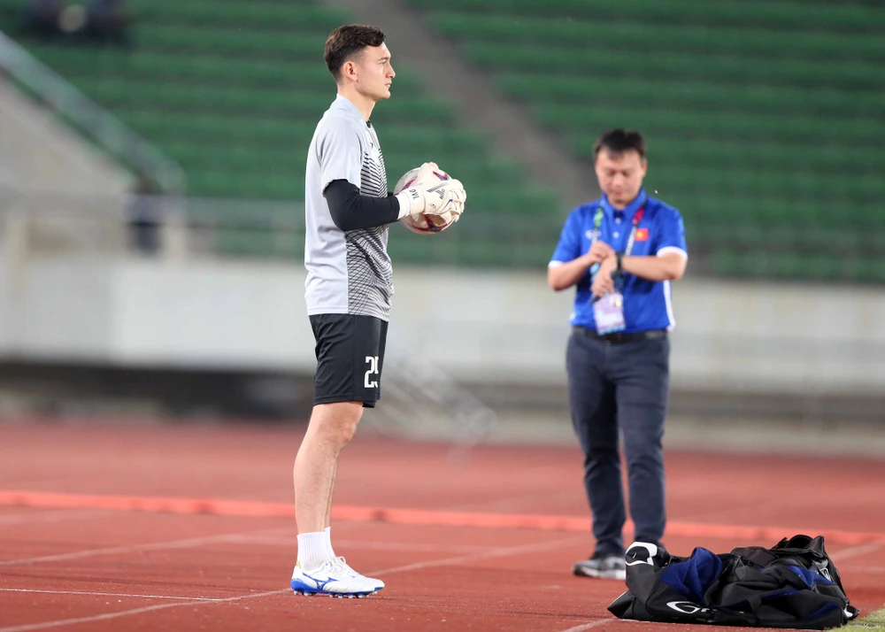 Thủ môn Văn Lâm khởi động.