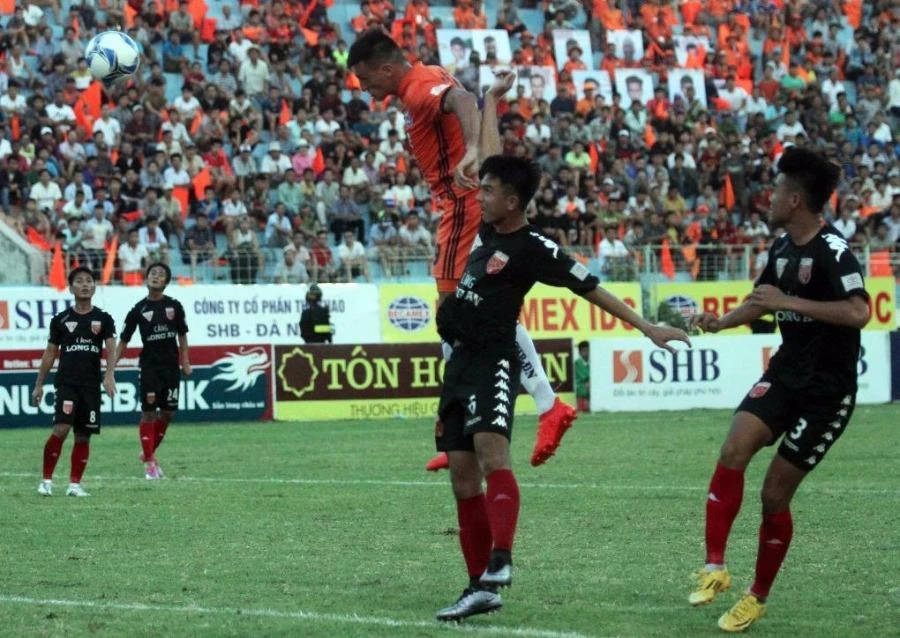 Trên sân nhà HLV Lê Huỳnh Đức tung ra sân đội hình mạnh nhất để quyết giành trận thắng trước một đối thủ cùng đường. Họ hoàn toàn làm chủ thế trận từ sau tiếng còi khai cuộc. Đội khách chỉ có thể cầm cự trong chừng 20 phút đầu trước áp lực ngày càng gia tăng của SHB Đà Nẵng, phút 33 Long An cũng phải bị thủng lưới bàn đầu tiên sau pha đánh đầu của Merlo.