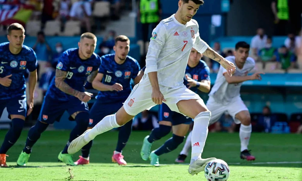 Đến phút thứ 10, tiền vệ Hromada của Slovakia có cú sút vào trúng chân Koke trong vòng cấm, sau khi tham khảo VAR trọng tài cho Tây Ban Nha được hưởng phạt đền. Tuy nhiên trên chấm 11 mét, Morata lại không thể đánh bại thủ môn Dubravka trong tư thế đối mặt. Phút 24, lại là Morata có cú sút xa trước vòng cấm, nhưng lần này thủ môn của Slovakia tiếp tục giành chiến thắng.