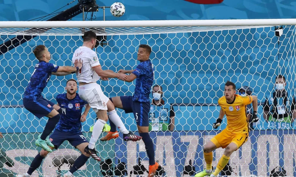 Đến phút 72, bàn thắng thứ 5 tiếp tục đến với Tây Ban Nha với pha đá “đốt đền” của Kucka. Từ tình huống lộn xộn trong vòng cấm của Slovakia, trung vệ Pau Torres đánh đầu cận thành, tiền vệ Kucka bên phía Slovakia trong pha bóng này phá bóng cẩu thả phản lưới nhà.
