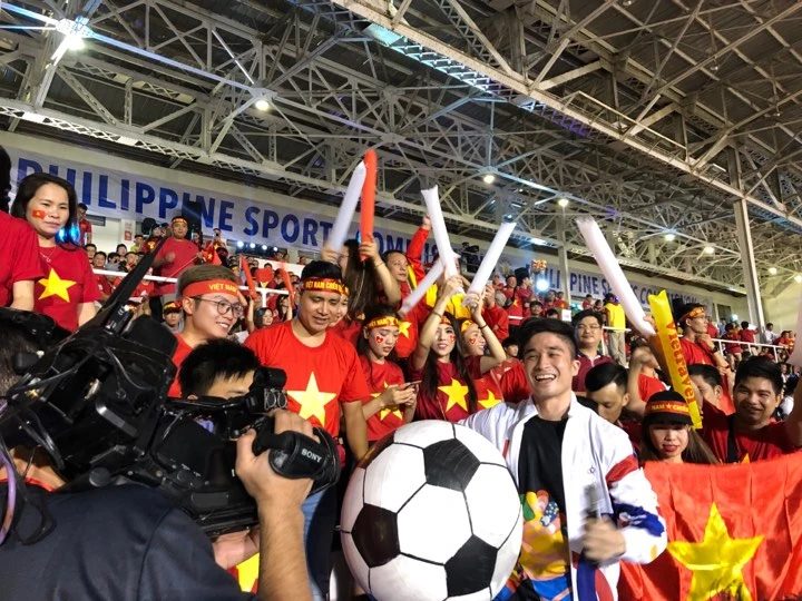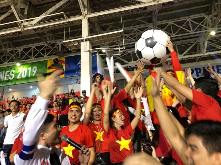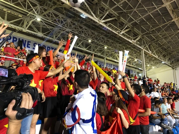 CĐV Việt Nam liên tục được ăn mừng bàn thắng trên sân Rizal Memorial.