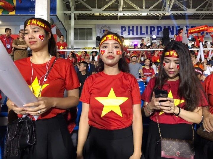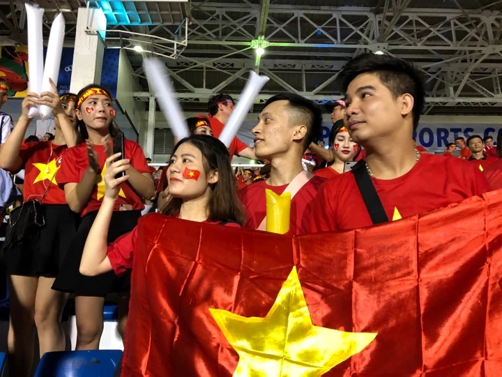 Các CĐV Việt Nam cuồng nhiệt trên khán đài sân Rizal Memorial. ẢNH: CÔNG TUẤN