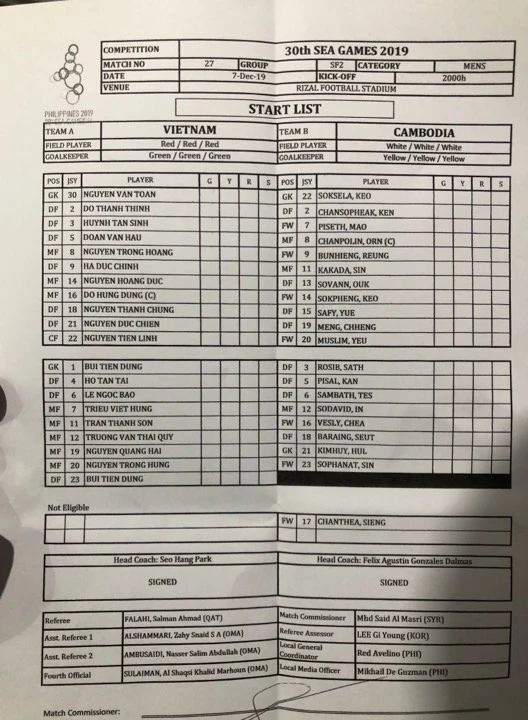 Danh sách thi đấu của hai đội. ẢNH: CÔNG TUẤN.