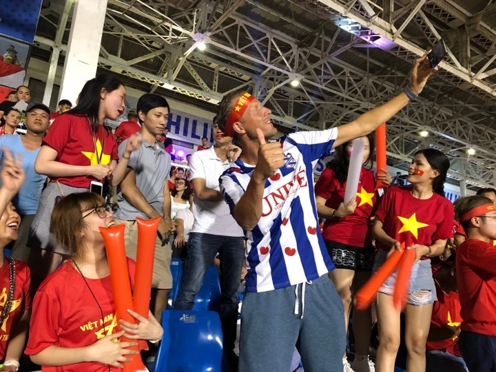 Một người nước ngoài cổ vũ cho U-22 Việt Nam. ẢNH: CÔNG TUẤN