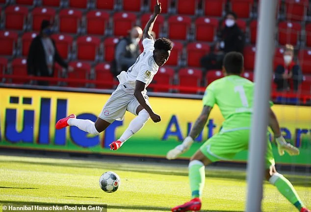 Năm phút sau, cầu môn của Union Berlin tiếp tục chao đảo bởi pha căng ngang của hậu vệ cánh Alphonso Davies. May cho chủ nhà Union Berlin, mặc dù thủ môn Rafal Gikiewicz đã không thể bắt được bóng nhưng các cầu thủ của Bayern Munich đã không xuất hiện kịp thời để dứt điểm.