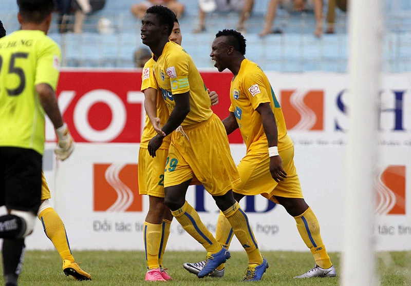 Bởi thế trong những phút đầu trận, đội bóng xứ Thanh là những người chơi tốt hơn và tạo được khá nhiều tình huống nguy hiểm về phía khung thành đội chủ nhà. Tuy nhiên, SHB Đà Nẵng mới là những người mở tỉ số từ pha phối hợp mạch lạc nhất của họ kể từ đầu trận: Phút 36, từ pha nhả bóng của Merlo, Anh Tuấn "xẻ" bóng ra cách trái cho Huy Toàn băng vào dứt điểm chéo góc, hạ gục thủ môn Thanh Thắng.