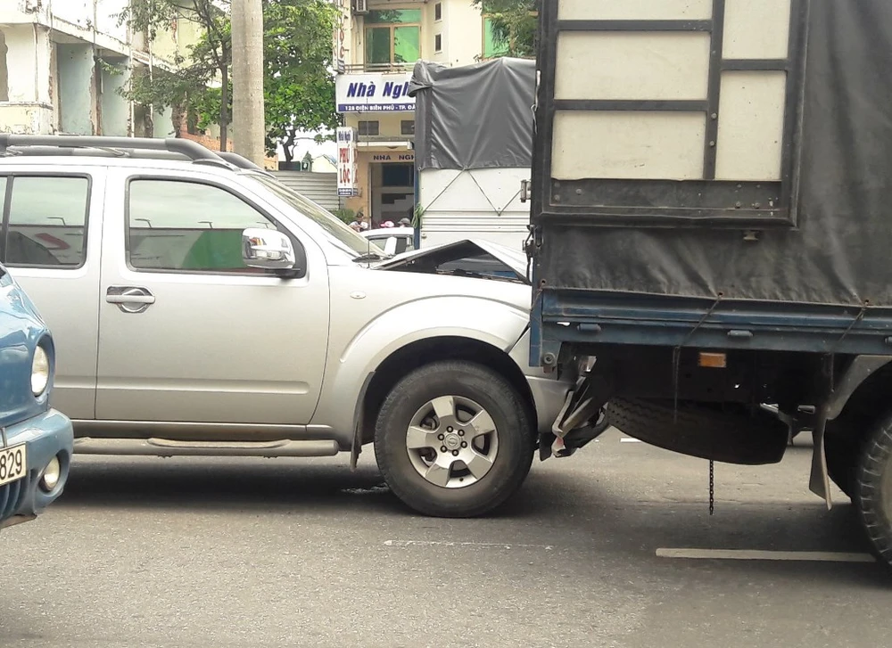 Khi chuẩn bị vào hầm chui Điện Biên Phủ (phường Chính Gián, quận Thanh Khê), do thấy cô gái chạy xe tay ga vừa ngã xuống đường ngay trước mặt, tài xế liền đạp thắng gấp khiến xe dừng đột ngột. Lúc này, hai xe bán tải chạy phía sau không giữ khoảng cách an toàn đã tông liên tiếp vào nhau, tạo nên tai nạn liên hoàn.