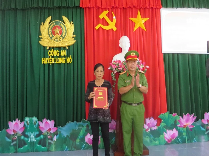 Theo đó Thiếu Nguyễn Đức Đạt (26 tuổi) thuộc đội Cảnh sát điều tra tội phạm về kinh tế - ma túy - Công an huyện Long Hồ được thăng cấp hàm lên trung úy sĩ quan nghiệp vụ cảnh sát nhân dân.