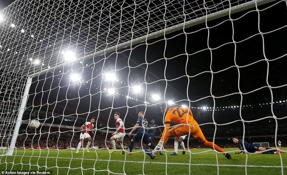 Aubameyang rút ngắn tỷ số còn 1-2 cho Arsenal.