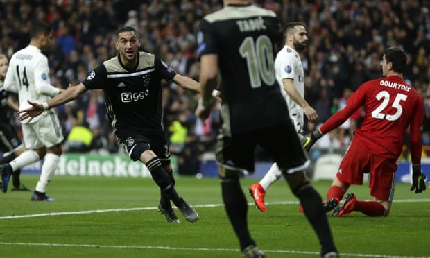 Ajax tiễn Real Madrid rời Champions League bằng siêu phẩm nâng tỷ số lên 4-1.