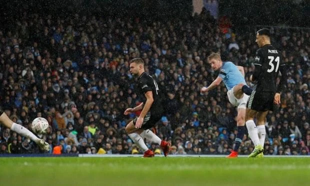 De Buyne sút xa mạnh mẽ nâng tỉ số lên 3-0 cho Man. City.