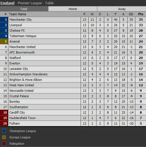 Với chiến thắng 4-0 trên sân của West Ham, đương kim vô địch Ngoại Hạng Anh Man. City tiếp tục giữ ngôi đầu bảng trên bảng xếp hạng với 35 điểm sau 13 lượt trận. Trong khi đó sau trận thua trước Man. City trên sân nhà, West Ham tạm xếp ở vị trí thứ 13 với 12 điểm.