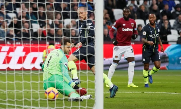 Tiền vệ người Đức, Sane với lợi thế về tốc độ xâm nhập vào vòng cấm của West Ham rồi nhanh chân căng ngang vào trong để Sterling dễ dàng ghi tên mình lên bảng điện tử ở phút 20.