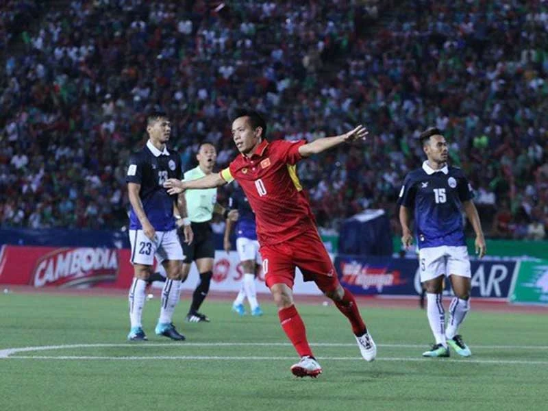Văn Quyết mừng bàn thắng trong một trận đấu mà đội Campuchia không nằm kèo dưới, còn đội Việt Nam thì quá xa lạ. Ảnh: VIETNAMNET
