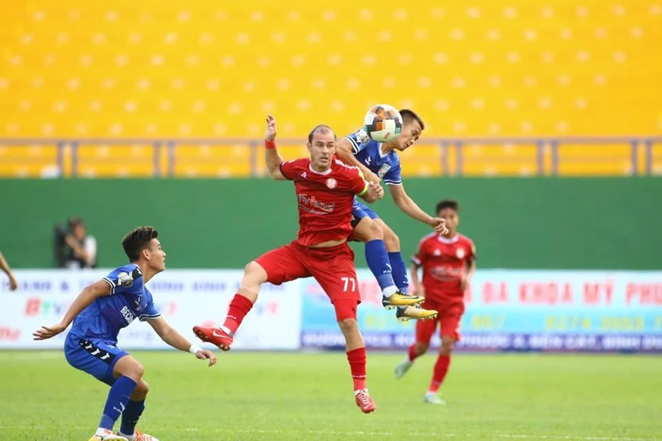 Chiều nay (12-4), “ông lớn” V- League B. Bình Dương tiếp “ngựa ô” của giải là TP.HCM đang cùng 10 điểm với đội đầu bảng Hà Nội tại vòng 5 V-League. Thầy trò HLV Chung Hae-seong tiếp tục có một chiến thắng ấn tượng và kịch tính trước cựu vô địch B. Bình Dương.