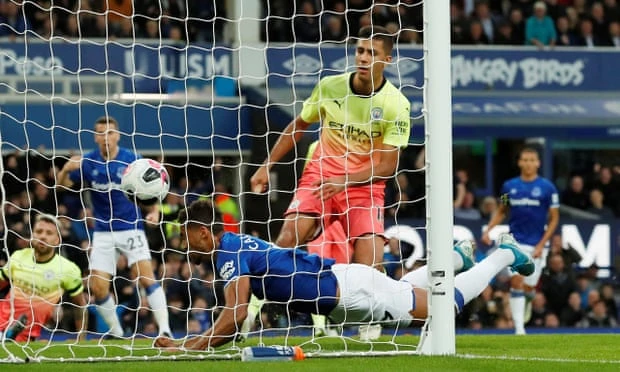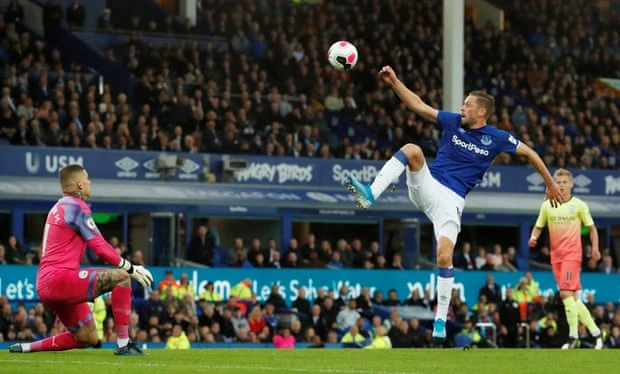 Nhưng với sức ép quá lớn của đội khách Man. City, 10 phút sau pha bỏ lỡ khó tin của Gundogan thì lưới của chủ nhà Everton cũng phải rung lên. Từ pha leo biên của Mahrez, bóng được đưa vào trung lộ cho Kevin De Bruyne vung chân tạt bóng đẹp mắt để tiền đạo Grabiel Jesus đánh đầu cận thành đưa Man. City vươn lên dẫn trước 1-0.