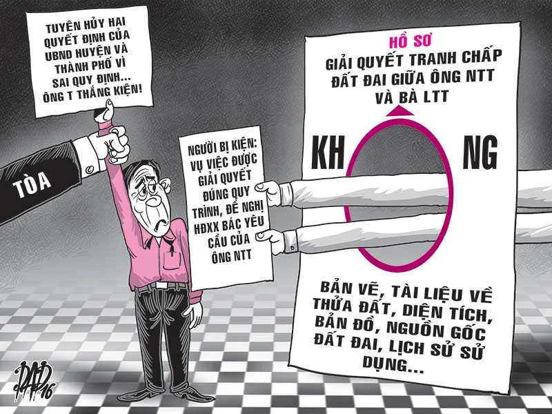 Theo hồ sơ, ông NTT và bà LTT tranh chấp quyền sử dụng 825 m2 đất tại xã Phước Thạnh (Củ Chi). Tháng 3-2014, chủ tịch UBND huyện Củ Chi ban hành Quyết định số 3462 công nhận đất tranh chấp thuộc quyền sử dụng của bà LTT.