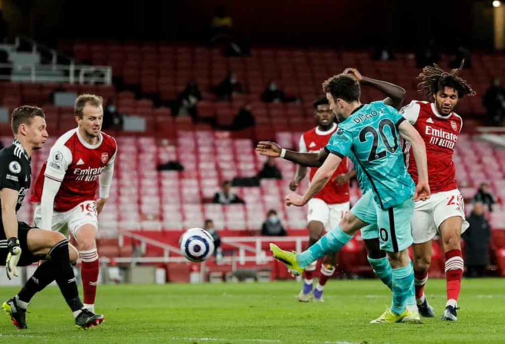 Phút 82, từ tình huống để mất bóng của hậu vệ Arsenal, các cầu thủ Liverpool nhanh chóng tổ chức tấn công. Salah thực hiện đường chuyền vào vòng cấm cho Mane, và tiền đạo người Senegal mớm bóng để Jota kịp băng lên dứt điểm ghi bàn.