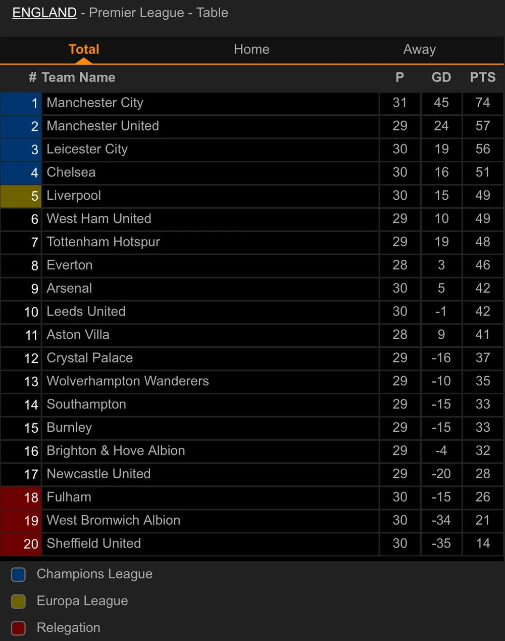 Giành chiến thắng với tỷ số 3-0 tại Emirates, Liverpool vươn lên vị trí thứ 5 trên BXH khi có được 49 điểm sau 30 vòng đấu, kém Chelsea 2 điểm. Tuy nhiên thầy trò Jurgen Klopp sẽ gặp sự cạnh tranh quyết liệt, bởi tại vòng đấu này Tottenham có chuyến làm khách trên sân của Newcastle còn West Ham đến chơi trên sân của Wolverhampton.