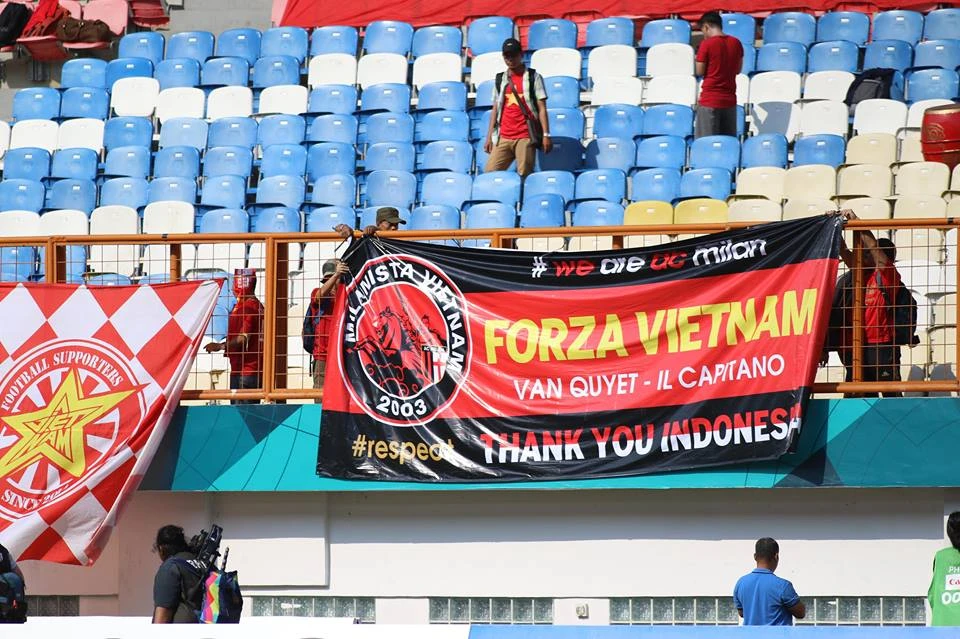 Đại cờ Việt Nam trên sân vận động Wibawa Mukti