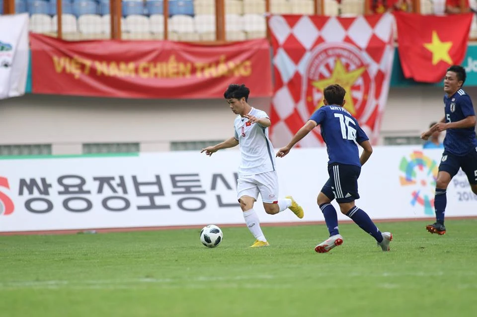 Phút 90+3, Công Phượng đi bóng lắt léo trong vòng cấm nhưng ở thời khắc quyết định, hậu vệ Nhật Bản đã kịp giải nguy.