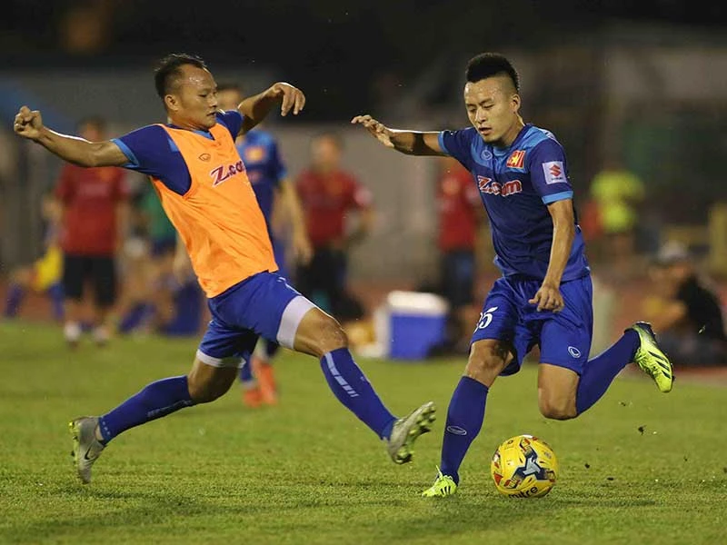 Thầy trò HLV Hữu Thắng đang gia cố việc phòng ngự không chỉ ở hàng thủ mà từ khi mất bóng. Ảnh: XUÂN HUY