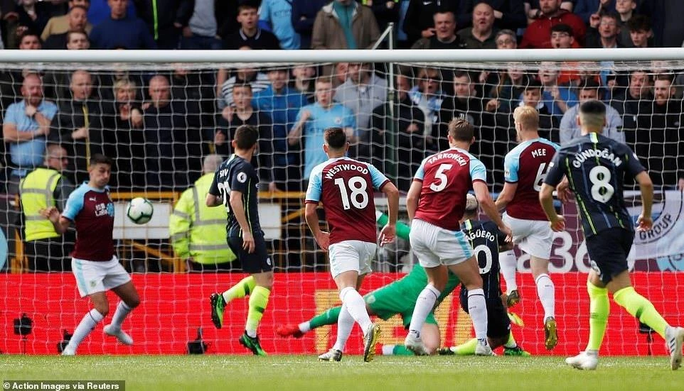 Mặc dù hậu vệ của Burnley nhanh chân phá bóng, nhưng trọng tài vẫn công nhận bàn thắng cho Man. City. Sau khi tham khảo công nghệ Goal Line mới thấy rằng bàn thắng của Aguero hoàn toàn hợp lệ, đội khách Man. City vươn lên dẫn trước 1-0 vô cùng khó khăn.