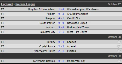Thắng tối thiểu 1-0 trước Tottenham, Man. City đã đòi được vị trí nhất bảng xếp hạng của Liverpool khi có cùng 26 điểm nhưng hơn về hiệu số. Xếp sau Man. City và Liverpool là Chelsea với 24 điểm.
