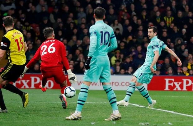 Phút 57 xuất phát từ tình huống phản công, Iwobi bên cánh trái bấm bóng vào vòng cấm cho Mkhitaryan thoải mái dứt điểm trong tư thế đối mặt. Nhưng lần này thủ môn Foster thi đấu tập trung để cản phá cú sút của cựu cầu thủ MU.