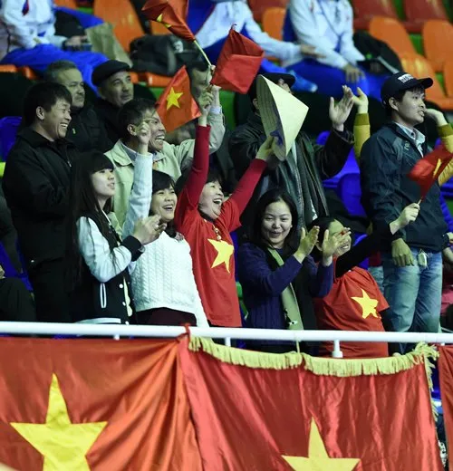 Đồng hương Việt Nam tại Tashkent đến sân cỗ vũ đội nhà thân yêu.