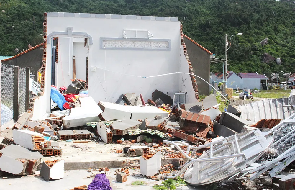 Gia đình anh Phong có bốn người thì có đến ba người bị thương. Vợ anh Phong bị bức tường đổ xuống đè gãy chân, hiện nằm điều trị tại BV đa khoa Khánh Hòa. Đứa con đầu của anh Phong bị thương nhẹ hơn… “Cả hai bức tường cùng mái nhà đổ xuống ngay chỗ con gái nhỏ của tôi đang nấp bão. Tôi hoảng hốt bới tìm cứu con. May mắn vô cùng là cháu nằm kẹt trong hốc” - anh thảng thốt khi kể.