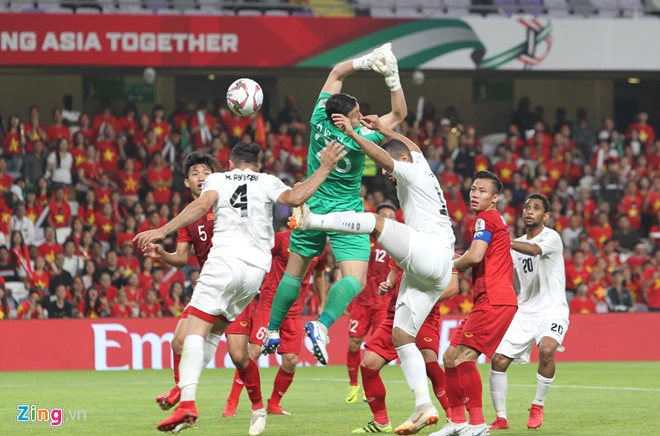 Phút 86, Ala Al Sasi sút bóng cận thành rất mạnh bật cầu thủ Việt Nam bật ra.