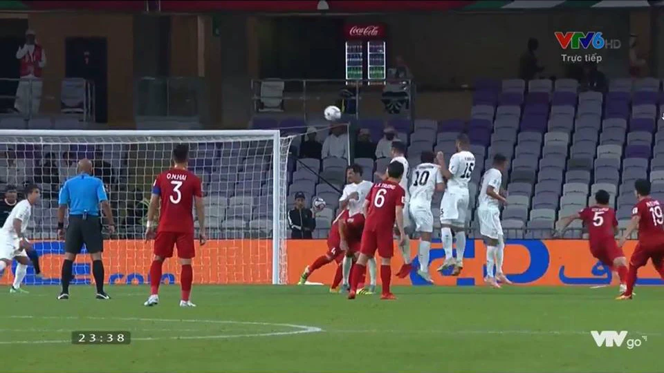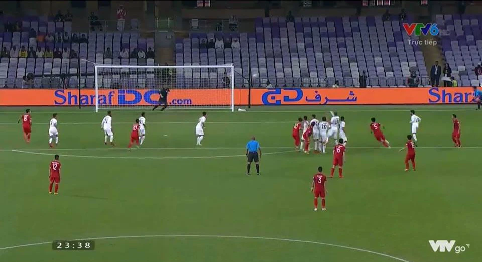 Phút 51, từ quả đá phạt góc, Ahmed Al Sarori bật cao đánh đầu nhưng bóng đi ngay vào vị trí của Văn Lâm.