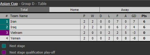Asian Cup 2019 hiện đã xác định 13/16 chiếc vé vào vòng knock-out, trong đó, 1 trong 4 vé vớt giành cho đội xếp hạng ba xuất sắc nhất đã thuộc về Bahrain.