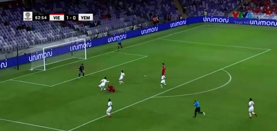 Phút 56, Văn Đức thoát xuống nhưng ở tình huống cuối cùng hậu vệ Yemen kịp phá bóng ra ngoài.