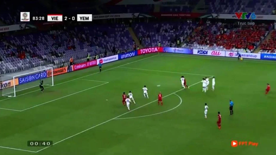 Phút 83, Văn Toàn bị phạm lỗi, Việt Nam được hưởng quả đá phạt trực tiếp ở cự ly có thể ghi bàn.