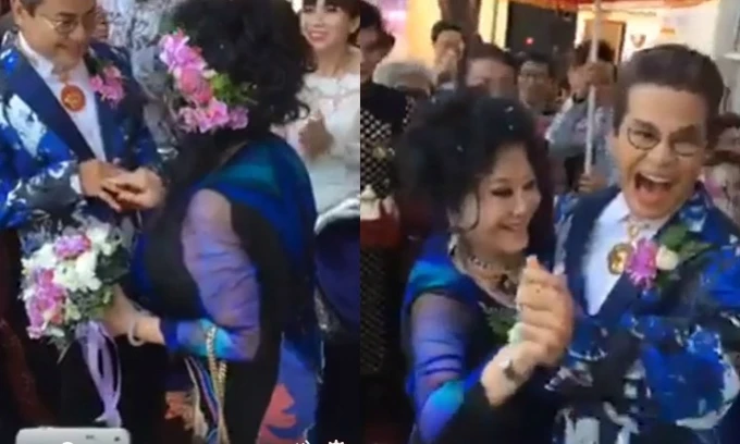 Hình ảnh clip đám cưới gây xôn xao trưa 14-7 của nghệ sĩ Thanh Bạch và bà Thúy Nga.