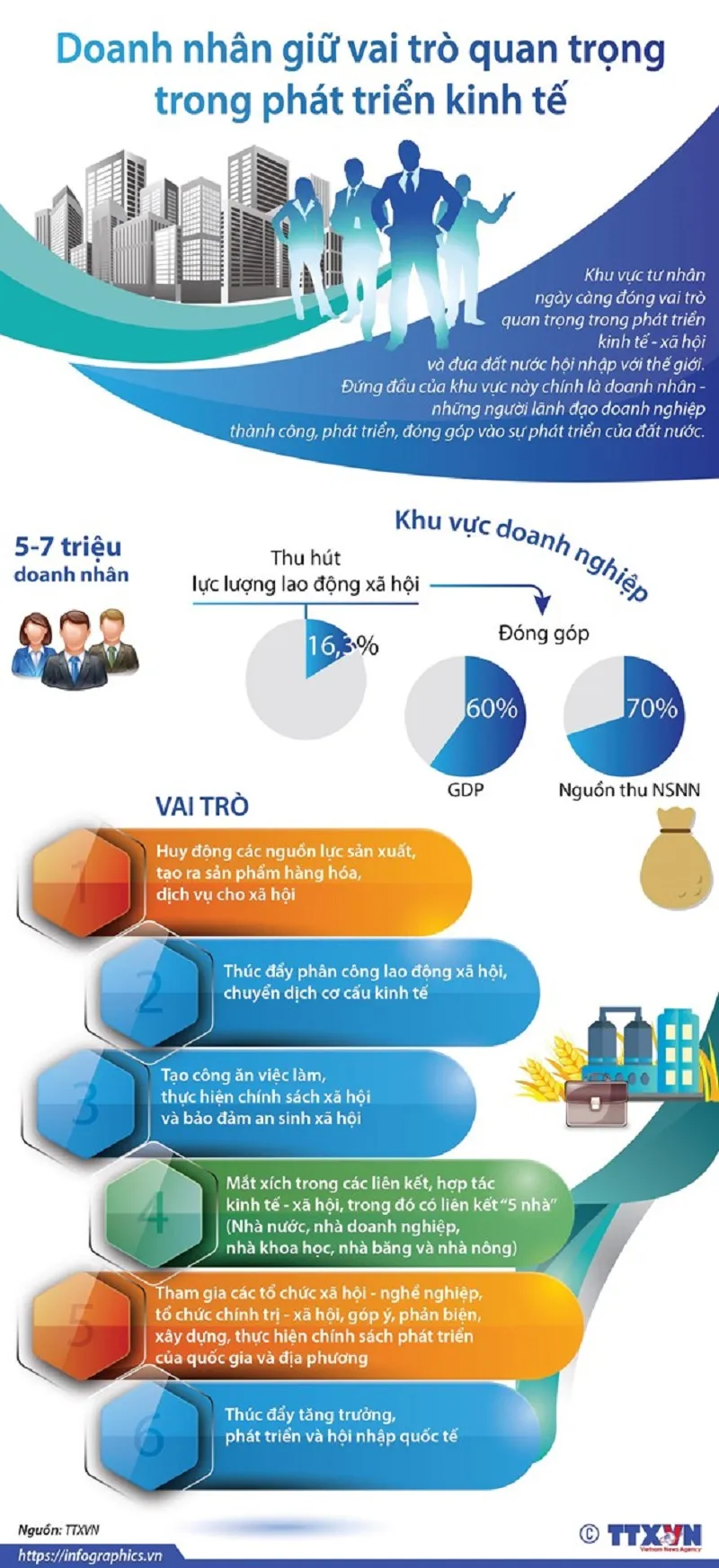 Ngân hàng Phát triển châu Á tuần qua cũng ghi nhận Việt Nam dẫn đầu ASEAN và trong nhóm dẫn đầu châu Á về tốc độ tăng trưởng. Trong bối cảnh kinh tế thế giới giảm tốc, bất ổn gia tăng, đó là một thành công lớn. Đóng góp vào những thành quả đó có vai trò quan trọng của đội ngũ doanh nhân và doanh nghiệp Việt Nam.