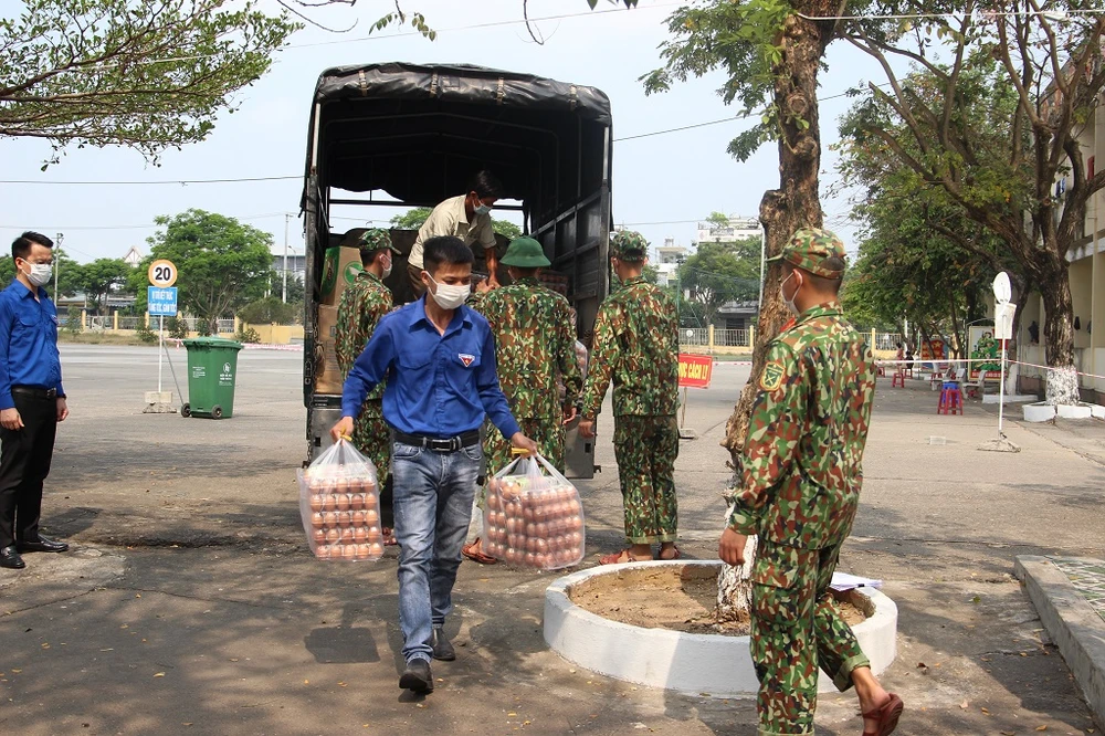 Theo đó, Thành đoàn Đà Nẵng đã trao tặng 100 bộ đồ bảo hộ cách ly, 20.000 quả trứng gà, 200 bánh xà phòng, 100 khẩu trang N95 và 1.000 quả dưa hấu cho hai khu cách ly tập trung là Trung tâm huấn luyện, bồi dưỡng kiến thức Quốc phòng An ninh (quận Liên Chiểu) và Trung tâm huấn luyện dự bị động viên Đồng Nghệ (huyện Hòa Vang).