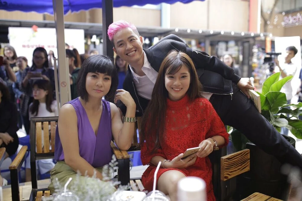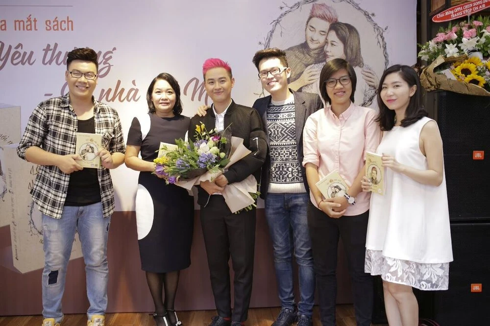 Từ trái sang, với nhiều cây viết trẻ ăn khách: Hamlet Trương, mẹ Thanh Duy, Thanh Duy, Anh Khang, Iris Cao, Thảo Minh Châu