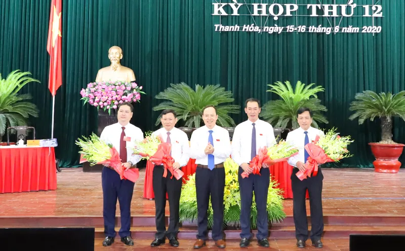 Ông Nguyễn Văn Thi (thứ 2 từ phải qua) được bầu giữ chức Phó Chủ tịch UBND tỉnh Thanh Hóa. Ảnh: ĐẶNG TRUNG