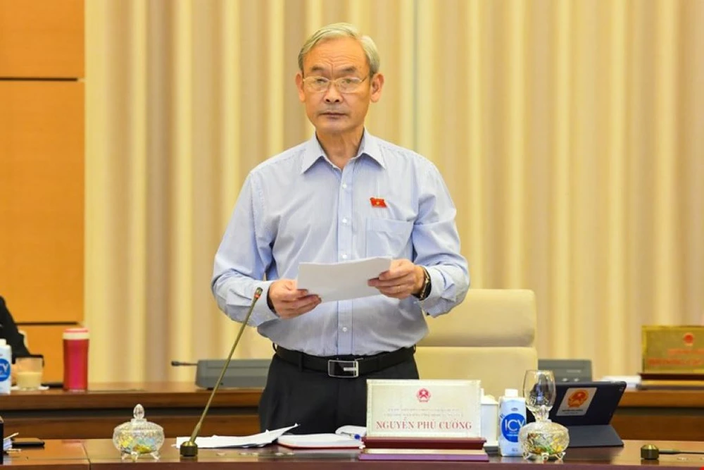 Chủ nhiệm UB Tài chính - Ngân sách Nguyễn Phú Cường trình bày báo cáo thẩm tra. Ảnh: QH