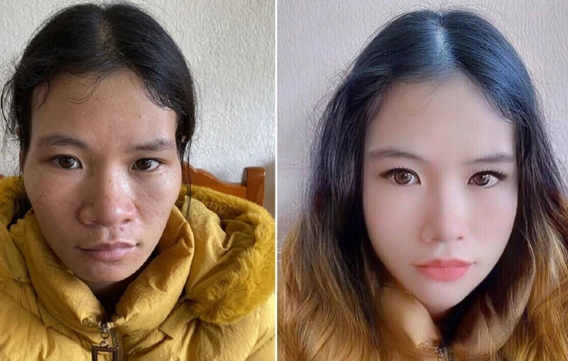 Hình ảnh ngoài đời thực (trái) và trên mạng xã hội là Lê Thị Hiền (28 tuổi) tạo tài khoản Facebook giả rồi rao bán khẩu trang, lừa đảo chiếm đoạt tài sản của nhiều người lên đến 600 triệu đồng.