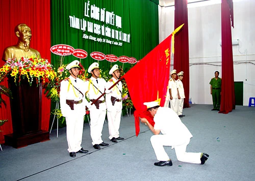 Cũng tại buổi lễ, thừa ủy quyền của Bộ Công an, đại diện lãnh đạo Công an tỉnh Hậu Giang tổ chức Lễ tuyên thệ thành lập Công an thị xã Long Mỹ. Đại tá Nguyễn Hải Sơn, Giám đốc Công an tỉnh Hậu Giang cho rằng: “Là đơn vị mới chia tách Công an thị xã Long Mỹ cần quán triệt sâu sắc các nhiệm vụ chính trị mà Ban Giám đốc Công an tỉnh giao; cần dự báo chính xác tình hình an ninh chính trị, trật tự an toàn xã hội trên địa bàn để có biện pháp đối phó kịp thời; củng cố, kiện toàn tổ chức bộ máy, đặc biệt phải đoàn kết nội bộ vượt qua những khó khăn trước mắt; tăng cường đoàn kết, gắn bó máu thịt với nhân dân…”.