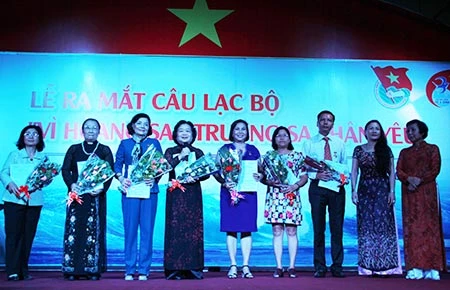 Nguyên Phó Chủ tịch nước Trương Mỹ Hoa (thứ tư từ trái sang) trong lễ ra mắt CLB. Ảnh: M.PHONG