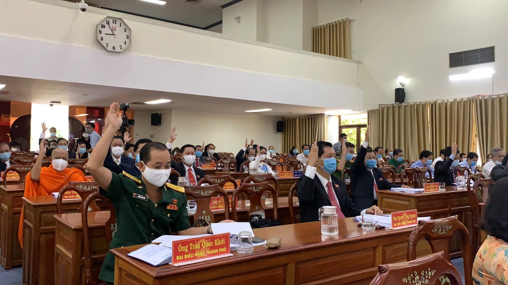 100 % các đại biểu biểu quyết thành lập Văn phòng Đoàn đại biểu Quốc hội và Hội đồng nhân dân thành phố Cần Thơ. Ảnh: HD